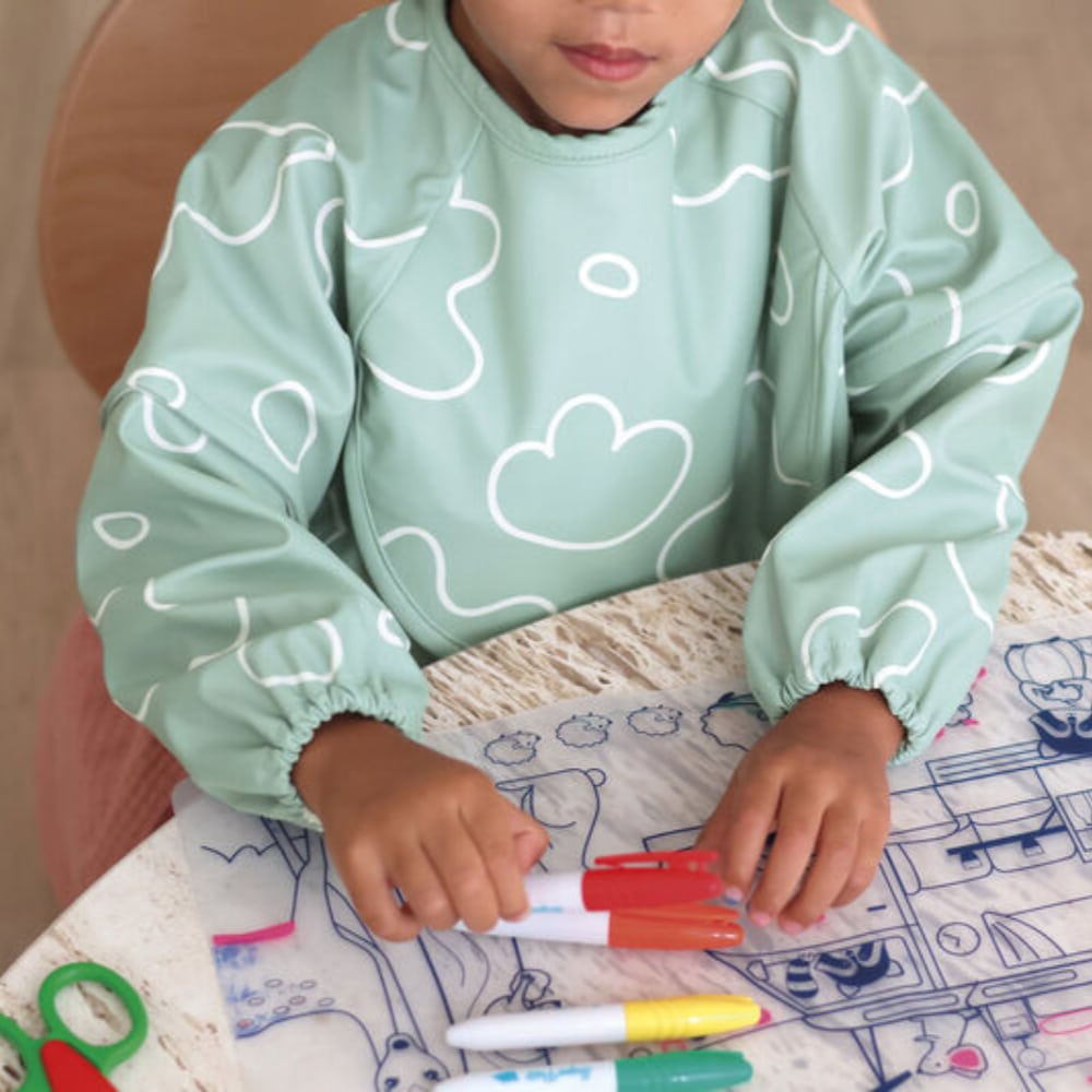Le bavoir tablier ultra-pratique qui grandit avec votre enfant, des premiers repas aux ateliers créatifs !
